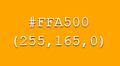 It seems the official label for orange is hex #ffa500, or RGB (255, 165, 0). Of course, red is pretty easy to guess; it’s #ff0000 or RGB (255, 0, 0). Let’s take a look at these: